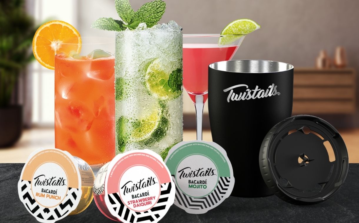 Las vainas de cóctel reciclables de doble cámara están rellenas de ron Bacardí y sabores naturales. Los consumidores pueden preparar un cóctel agregando agua y hielo a la coctelera Twistails, colocando el colador y la cápsula de cóctel de su elección antes de girar y agitar bien.