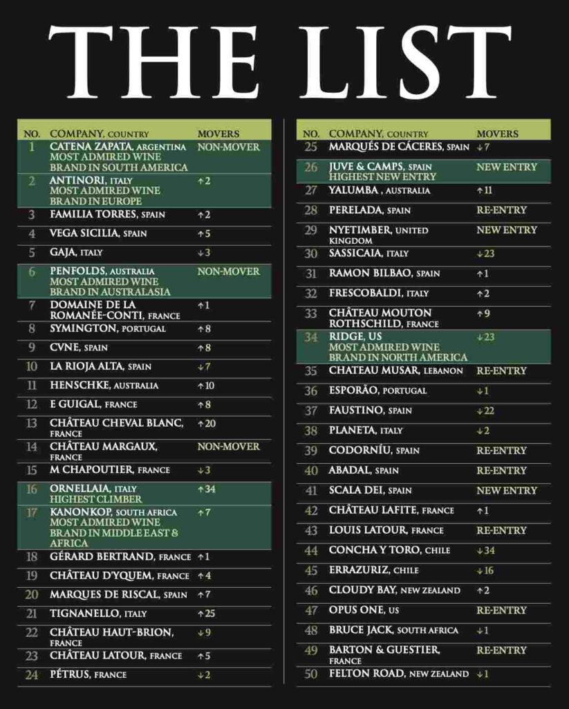 - 1 – Catena Zapata (Argentina) – Most Admired Wine Brand in the World