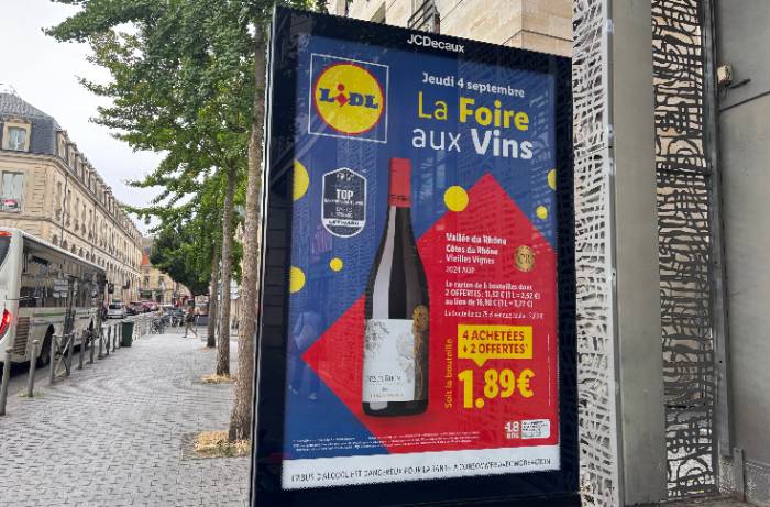 En un supermercado Lidl de Sérignan, en el departamento de Hérault (al sur de Francia), una botella de rosado Côtes de Gascogne de 75 cl apareció en góndola a 0,01 €, cuando su precio normal es de 2,99 €, lo que provocó una reacción inmediata de viticultores y representantes agrícolas. La operación, aunque breve, fue interpretada como un golpe simbólico a la ya frágil imagen de valor del vino en un contexto de sobreoferta y presión en los precios.